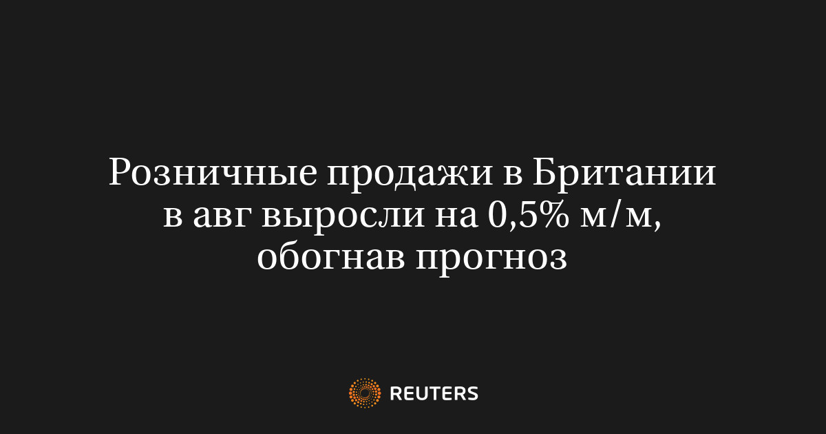 19 сентября (Рейтер) – В августе розничные продажи в Великобритании выросли на 0,5% по сравнению с предыдущим месяцем и на 0,7% по сравнению с аналогичным периодом прошлого года.