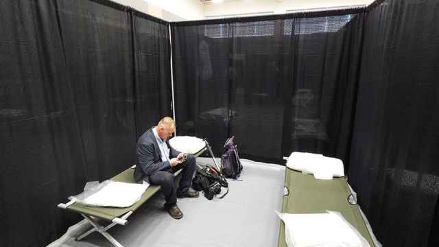 «Прибываешь на спортивный стадион команды “Морские волки” в Аляске на ночлег и понимаешь, что о вас позаботился Международный Красный Крест. Здесь вспомнили опыт пандемии и развернули ночной лагерь для журналистов. Черные ширмы, образующие двухместные палаты, комплект постельного белья с одеялом и подушкой, душевые кабины… Некоторые были настолько потрясены увиденным, что задумались: а где же оказались реанимационные палаты с аппаратами ИВЛ…» — делится впечатлениями Андрей Колесников.