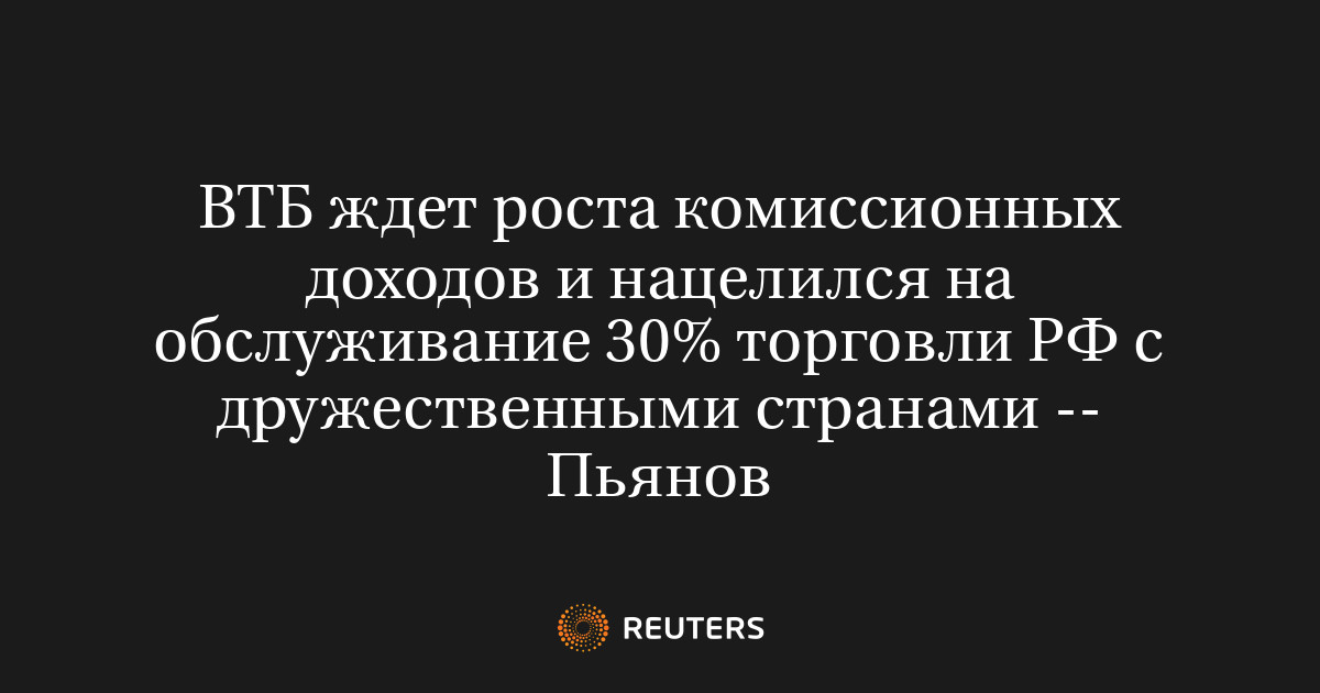МОСКВА, 17 сентября (Рейтер) – ВТБ, государственный банк, планирует увеличить свою долю в обслуживании внешнеэкономической деятельности России с дружественными странами до 30% к 2026 году. Об этом сообщил Дмитрий Пьянов, первый заместитель председателя правления и финансовый директор банка.