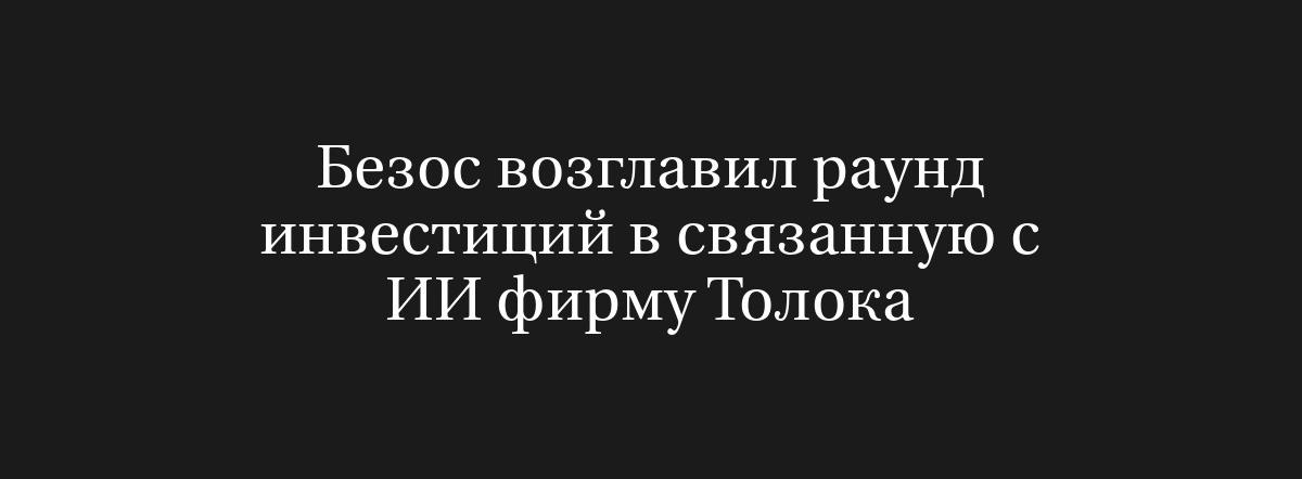 ЛОНДОН, 7 мая (Рейтер) – Инвестиционная компания Джеффа Безоса, Bezos Expeditions, возглавила проект, в рамках которого будет инвестировано $72 миллиона в компанию Толока, работающую в сфере разметки данных для обучения систем искусственного интеллекта, сообщила Толока агентству Рейтер в среду.