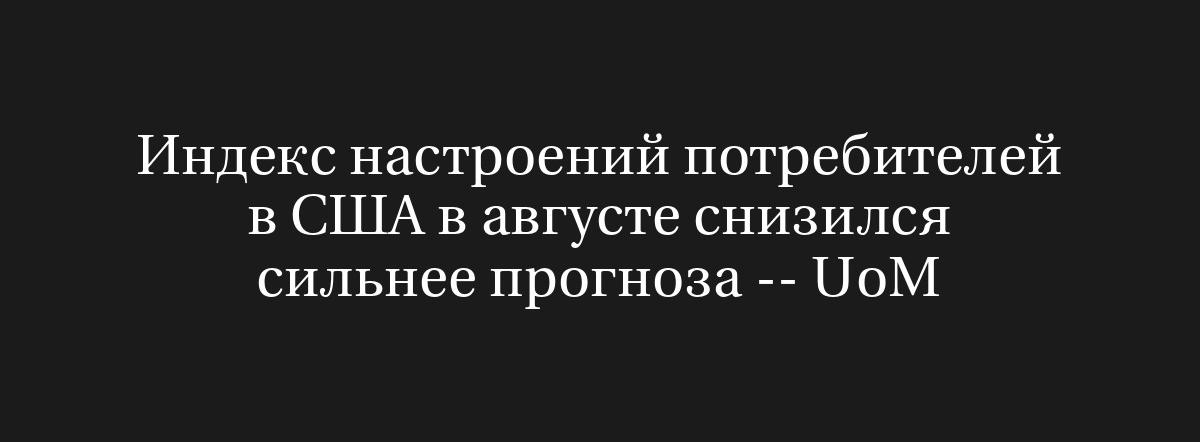 29 августа (Рейтер) – В соответствии с сообщением Университета Мичигана, окончательное значение индекса потребительского доверия в США за август составило 58,2 пункта.