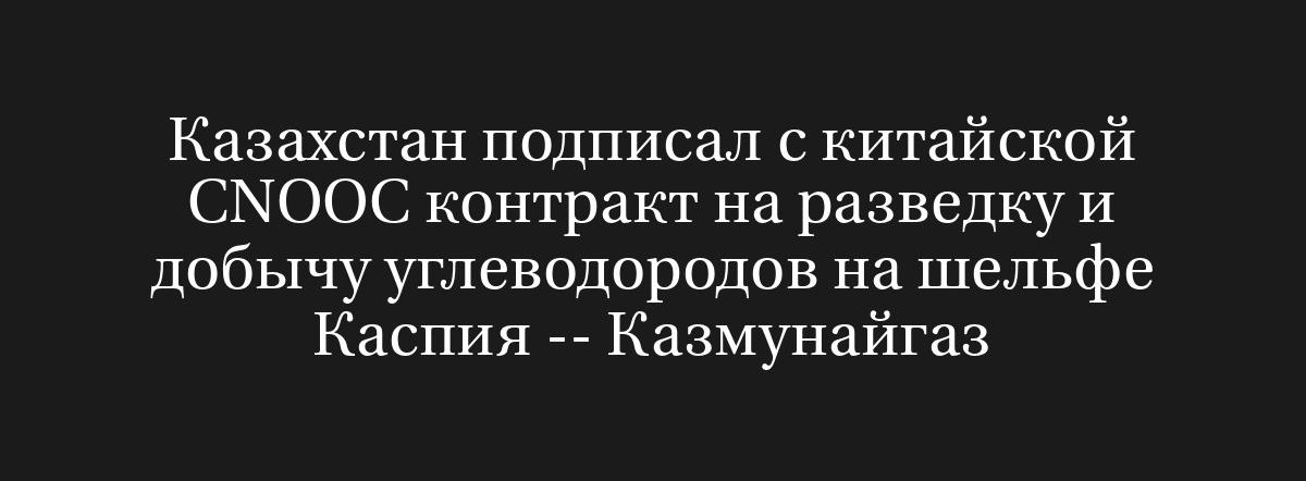 Казахстан и китайская CNOOC заключили исторический контракт на разведку углеводородов в Каспии