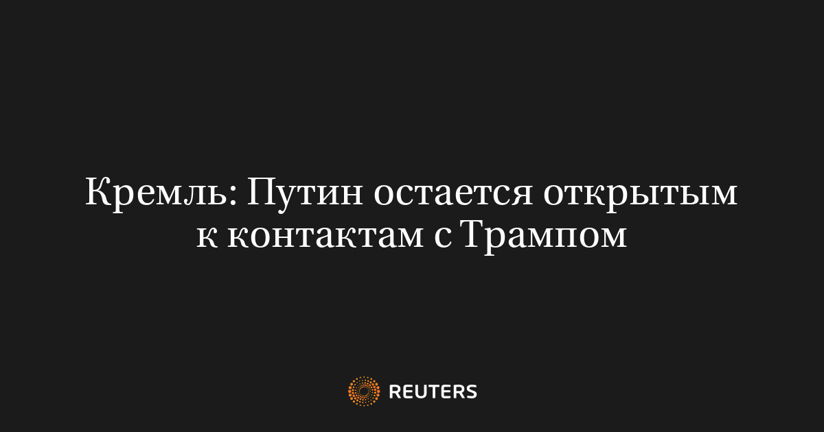 МОСКВА, 31 марта (Рейтер) – Президент Российской Федерации Владимир Путин остается готовым к взаимодействию с американским президентом Дональдом Трампом, сообщил в понедельник пресс-секретарь Кремля Дмитрий Песков.