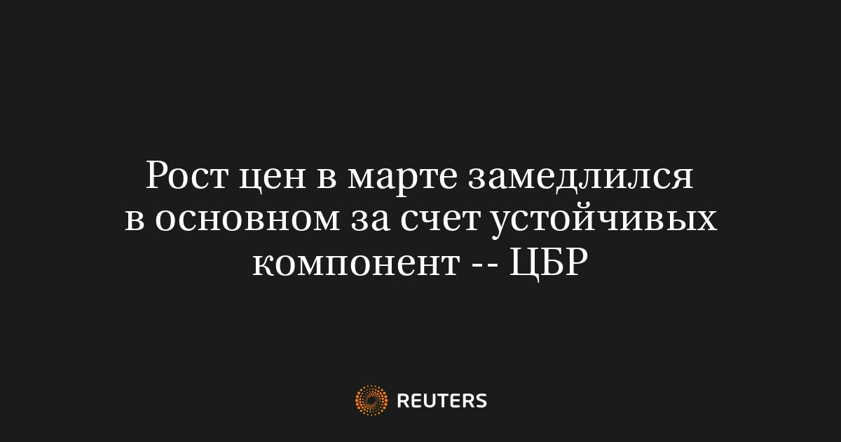 МОСКВА, 16 апреля (Рейтер) – В марте темпы роста цен, с исключением сезонных факторов, продолжили замедляться, о чем свидетельствует отчет Центрального банка России (ЦБР).