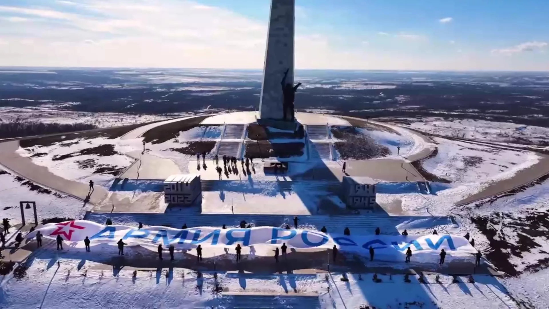 На Саур-Могиле установлен символ победы: 50-метровый флаг армии России в честь Дня защитника Отечества
