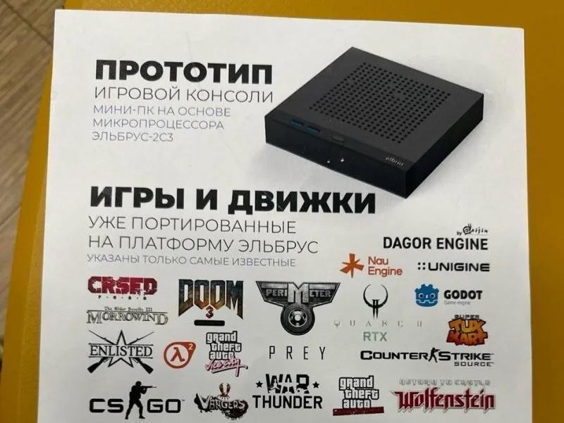 Министерство промышленности и торговли РФ дало задание МЦСТ, разработчику процессоров «Эльбрус», на создание процессора для российской игровой приставки. «Фонд Сколково» займётся разработкой соответствующего плана, при этом МЦСТ предоставит спецификации для нового процессора, а компания Fplus — для самой консоли. Ожидается, что новый игровой процессор будет готов к 2026 году и, скорее всего, его производство развернут в Китае. Общие расходы на проект прогнозируются на уровне около 20 миллиардов рублей, из которых до 50% будет субсидировано Минпромторгом, сообщает издание «Коммерсантъ».