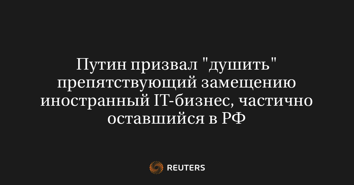 МОСКВА, 26 мая (Рейтер) – Президент России Владимир Путин заявил, что необходимо ограничить деятельность иностранных технологических компаний, которые еще не полностью покинули страну и мешают процессу импортозамещения, упомянув, в частности, компанию Microsoft с ее продолжающимися сервисами.