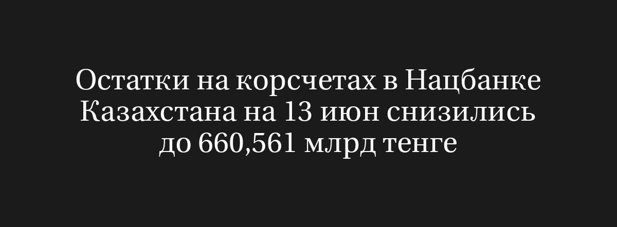 Снижение остатков на корсчетах в Нацбанке Казахстана: 660,561 млрд тенге по состоянию на 13 июня