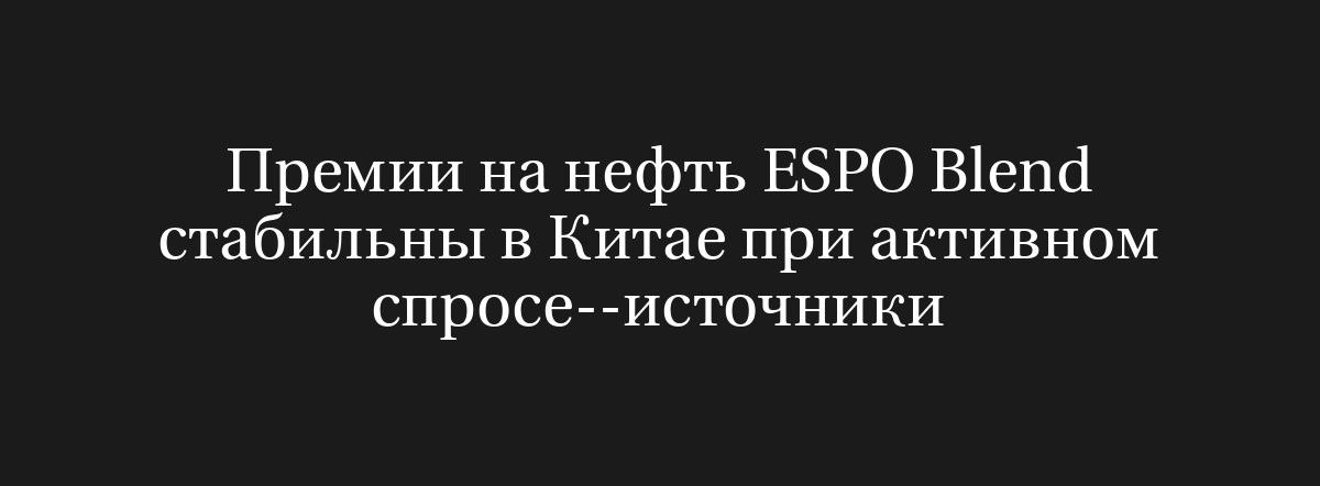 МОСКВА/СИНГАПУР, 1 июля (Рейтер) – Цены на российскую нефть сорта ESPO Blend, ожидающую отгрузки из дальневосточного порта Козьмино в период с середины июля до начала августа, оставались на стабильном уровне в портах Китая, достигнув примерно $2 за баррель по отношению к ICE Brent, сообщили четыре источника в отрасли.