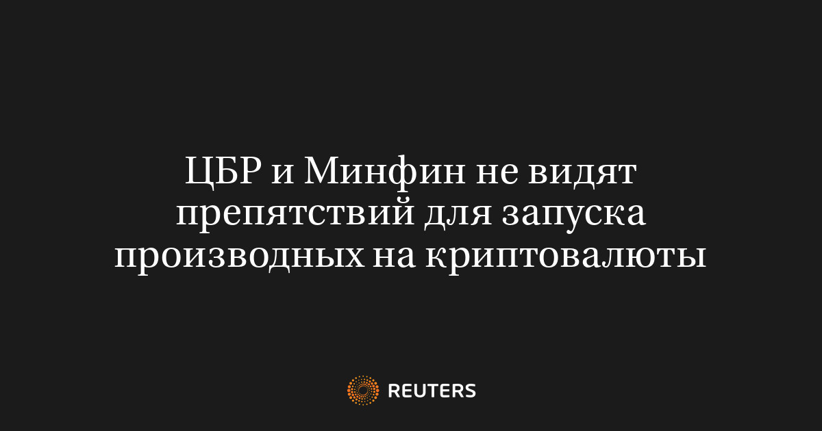 МОСКВА, 16 мая (Рейтер) – Центральный банк России и Министерство финансов сообщили, что не видят препятствий для выпуска беспоставочных деривативов на криптовалюту, согласовав один из аспектов регулирования инвестиционной деятельности в этом сегменте.