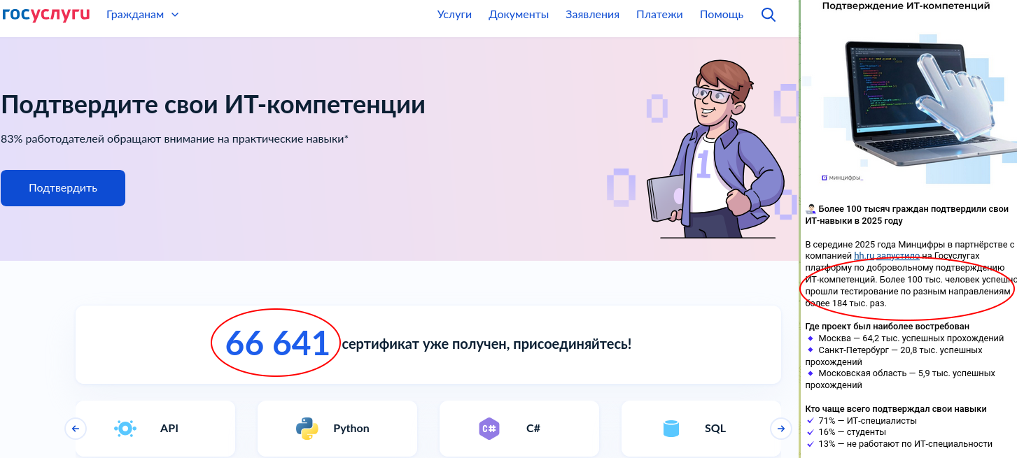 184 тысячи тестов: как пользователи сертифицировались в IT на «Госуслугах» за 8 месяцев!