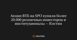 МОСКВА, 19 сентября (Рейтер) – Глава Госбанка ВТБ Андрей Костин сообщил, что банк удовлетворён результатами размещения акций, которое стало крупнейшей...