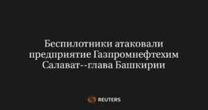 МОСКВА, 18 сентября (Рейтер) – Два беспилотных летательных аппарата атаковали завод Газпромнефтехим Салават, сообщил в своем телеграм-канале руководитель Башкирии Радий...
