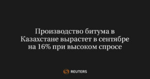 МОСКВА, 16 сентября (Рейтер) – Крупные производственные компании Казахстана увеличат выпуск дорожного битума в сентябре до 136.300 тонн, по сравнению...