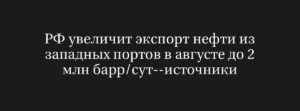 Россия планирует увеличить экспорт нефти до 2 миллионов баррелей в сутки в августе из-за сокращения переработки на НПЗ