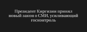 Киргизский президент вводит закон о СМИ, усиливающий госконтроль и ограничивающий свободу слова