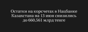 Снижение остатков на корсчетах в Нацбанке Казахстана: 660,561 млрд тенге по состоянию на 13 июня