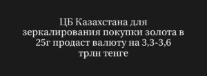 Нацбанк Казахстана планирует продажу валюты на 3,6 трлн тенге для поддержки покупки золота в 2025 году