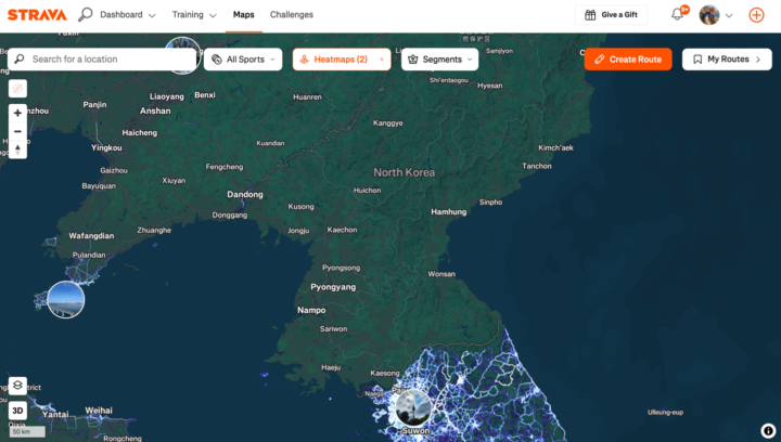 Интересно, но раньше Strava использовала данные из Северной Кореи и демонстрировала их в своем сервисе.