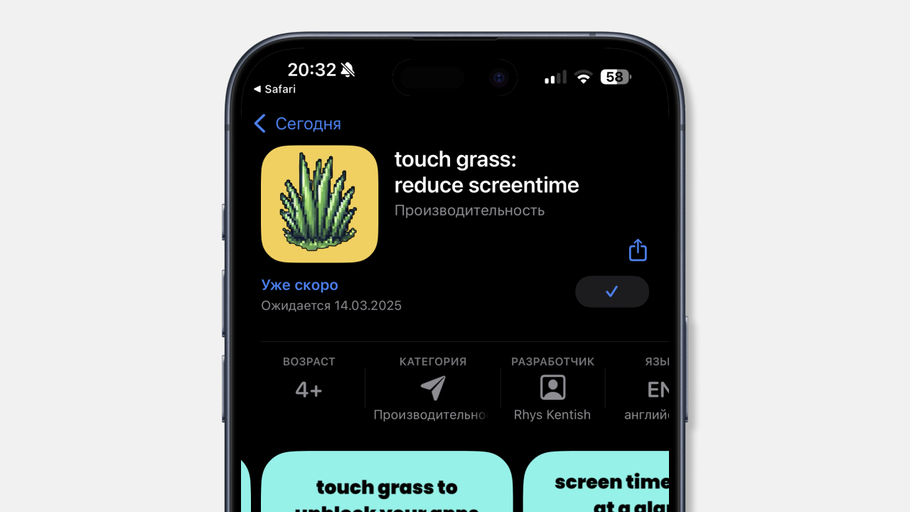 Приложение доступно бесплатно, однако для некоторых функций потребуется подписка. С ее помощью можно блокировать неограниченное количество приложений, отслеживать историю использования экрана и анализировать поведенческие паттерны. Touch Grass будет доступно в App Store 14 марта 2025 года. В данный момент приложение уже можно добавить в свой список желаемого.